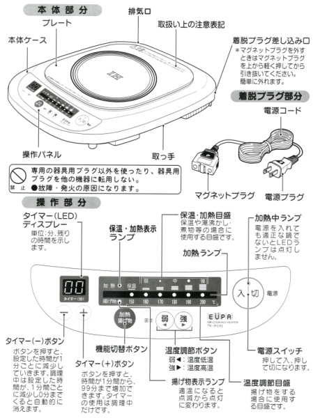 商品名 EUPA(ユーパ) IH調理器 TK-IH141