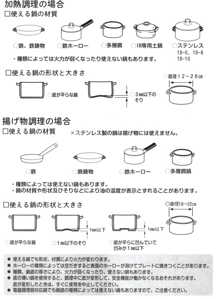 安全装置 切り忘れ防止機能・オートパワーオフ機能・鍋検知機能・温度過昇防止機能